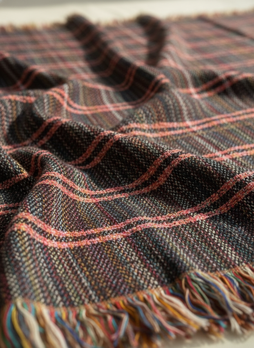 Design: Soft checks in earthy, cool-toned palette